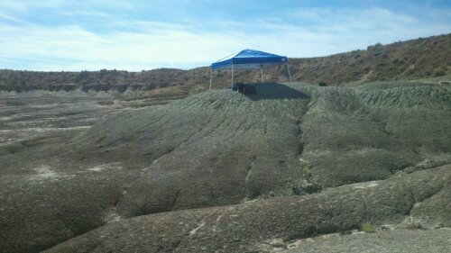 We set up to do some quarrying, but the wind put an end to that quickly. Maybe where we put the shade was a little precarious.