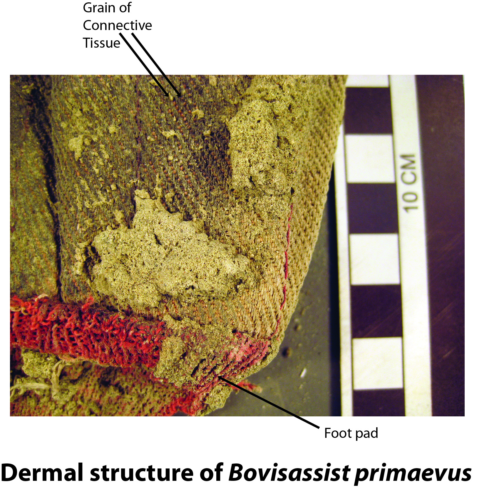 Probovisassist, like Eubosassist, has an external, smooth, rubbery integument. There is no obvious internal structure composed of cellulosic fibers. Such a structure is present in Bovisassist, though overlain over about half of the organism’s surface with the rubbery integument shared with Eubosassist and Probovisassist.