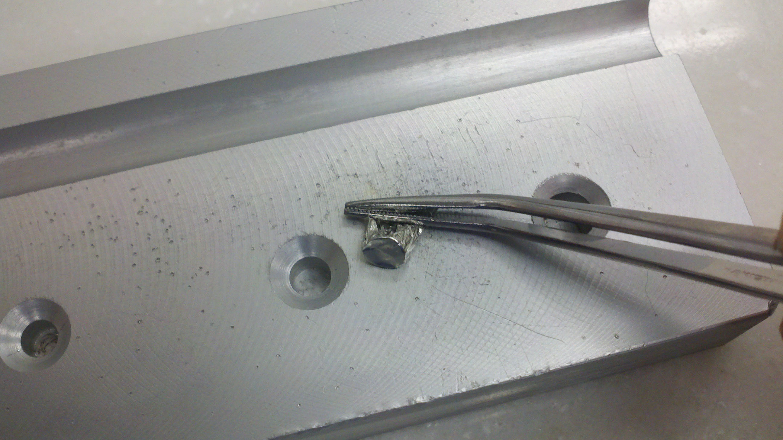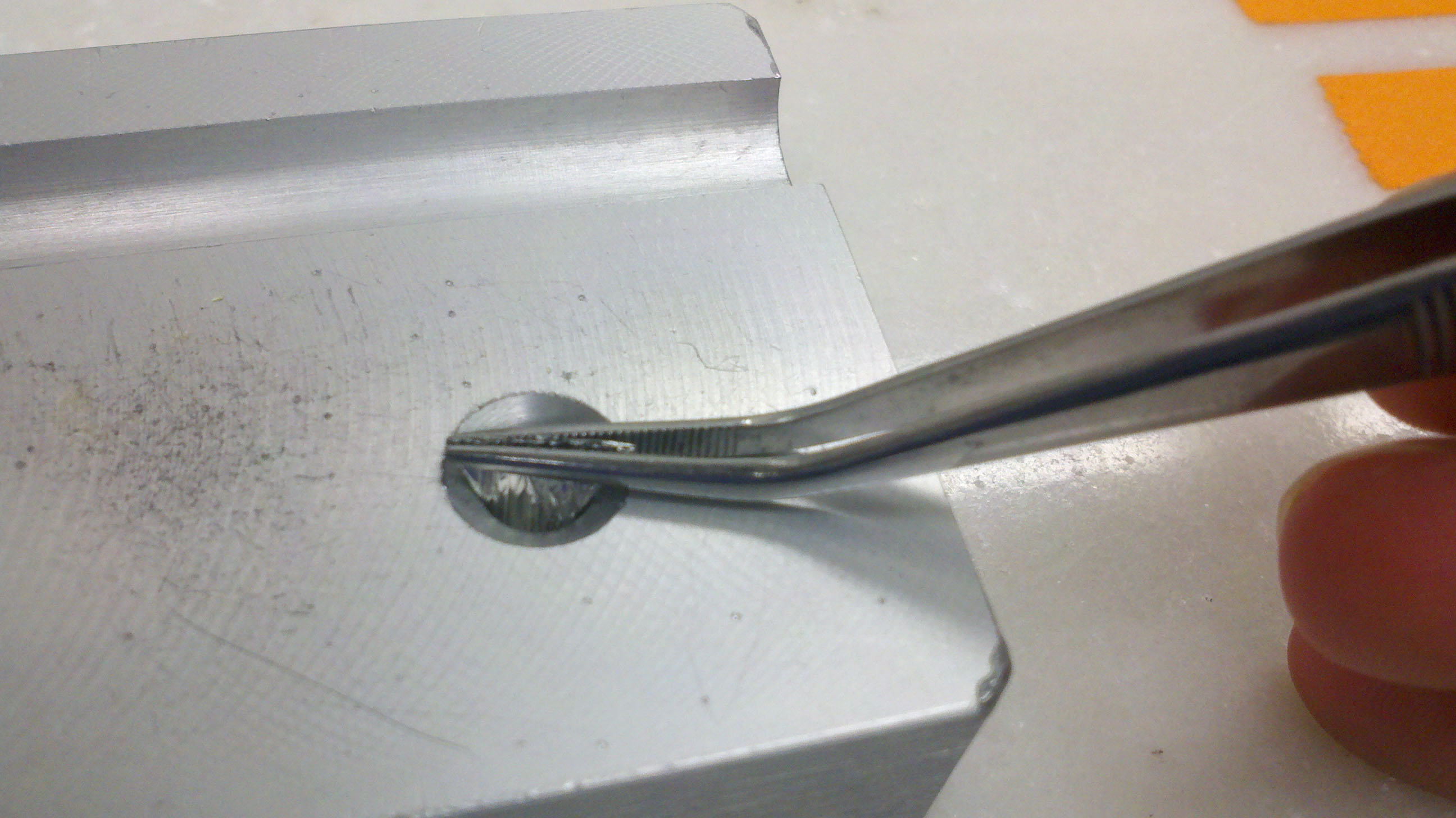 But how do you do it? Those little cubes are less than one millimeter on a side. And the capsules, to start, are not even half an inch long. And, yeah, you can’t touch anything with your fingers, lest you contaminate the samples. You have to use tweezers. It’s a little like laparoscopic surgery.