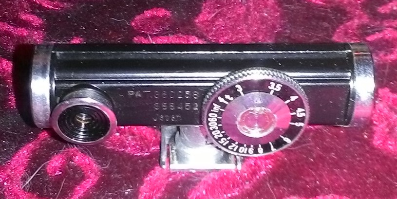 It has to be a view finder and flash attachment for an old filbem camera. The dial looks to be the aperture setting