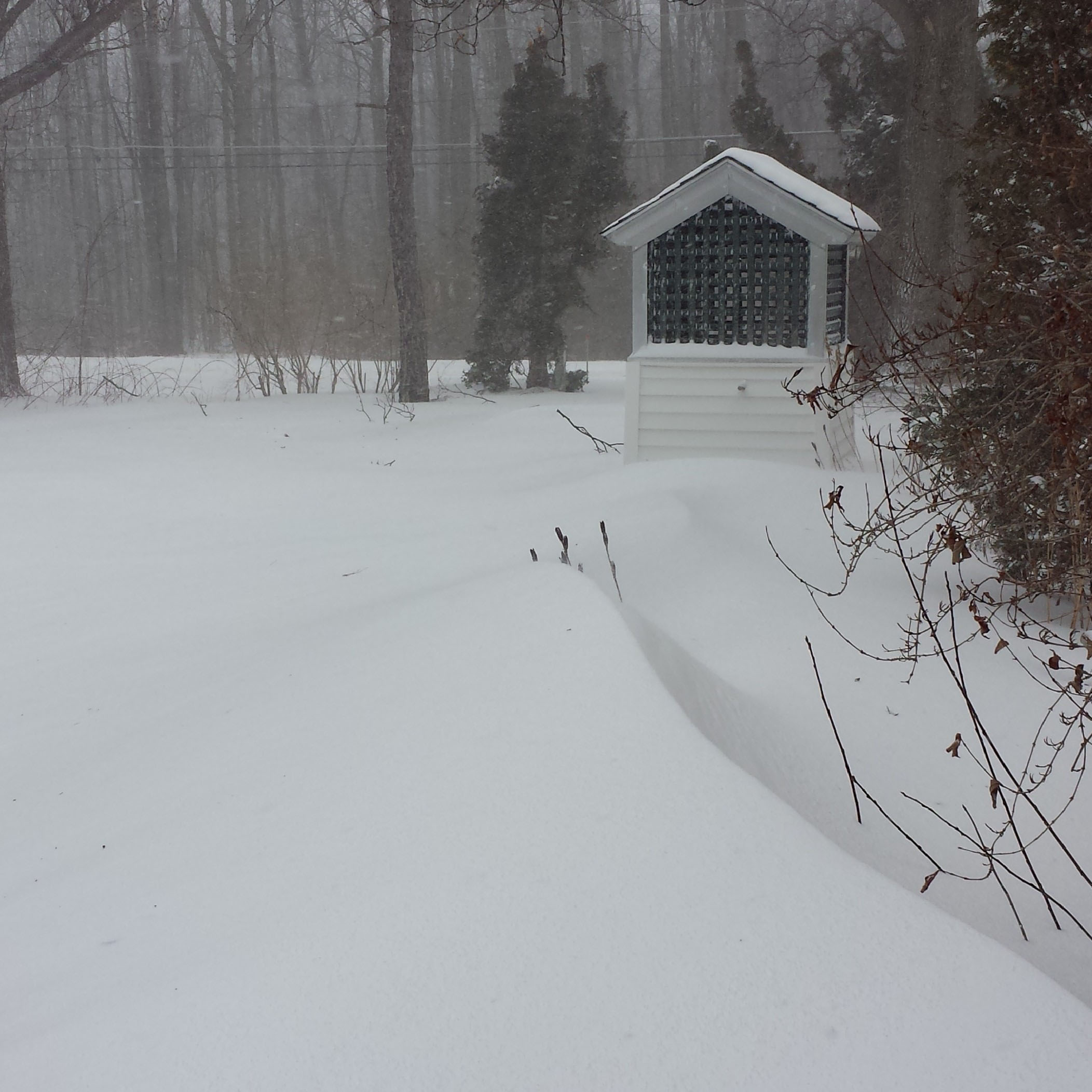 I decided to take it upon myself to take photos of the same subject at regular intervals in order to capture the depth of snow. The snow didn’t get terribly deep, but the drifts got huge.
