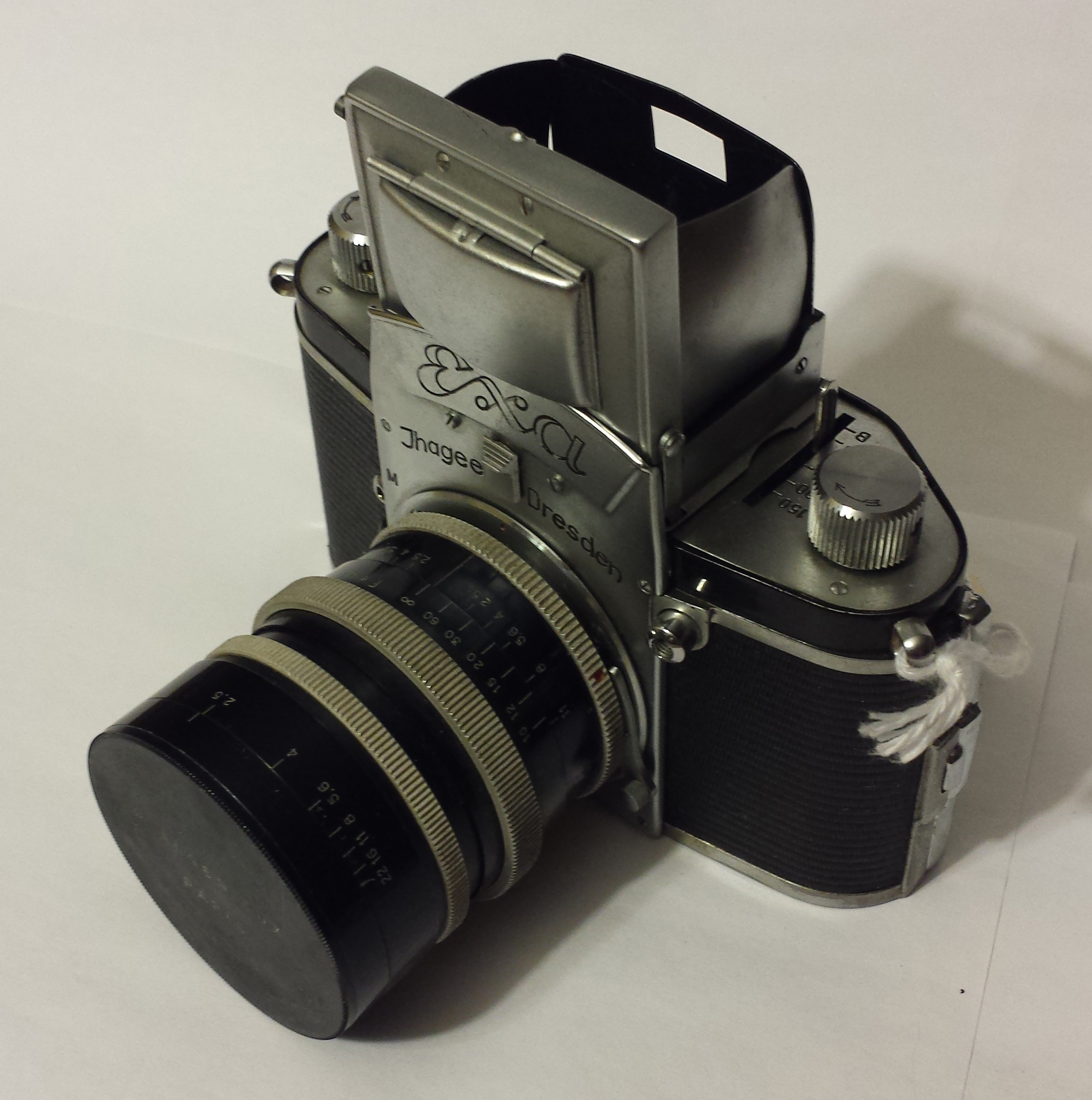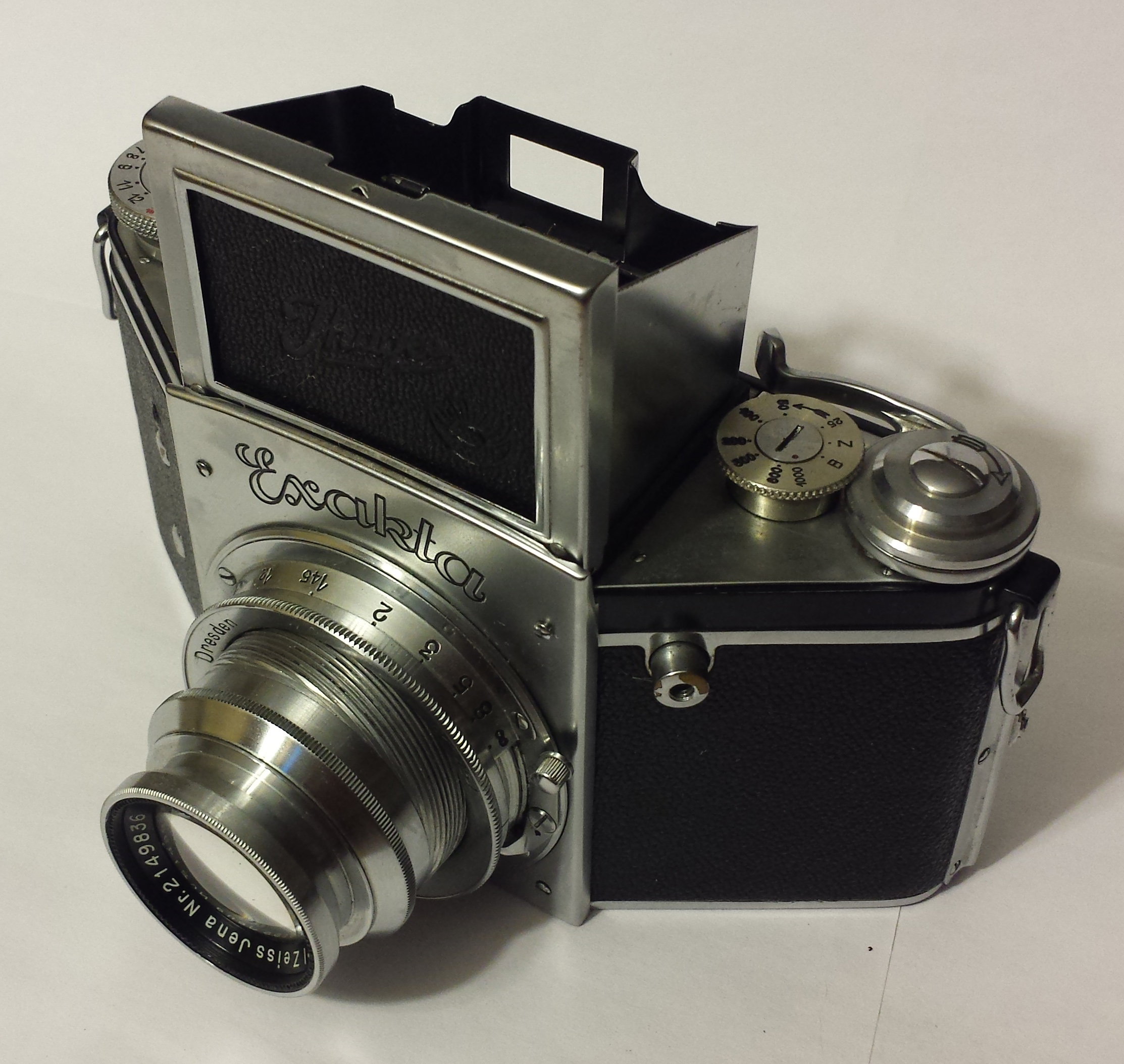 The earlier Exa cameras were unique because the view finder could be swapped out for a pentaprism, allowing the photographer to hold the camera up to his or her eye for focusing and aiming.