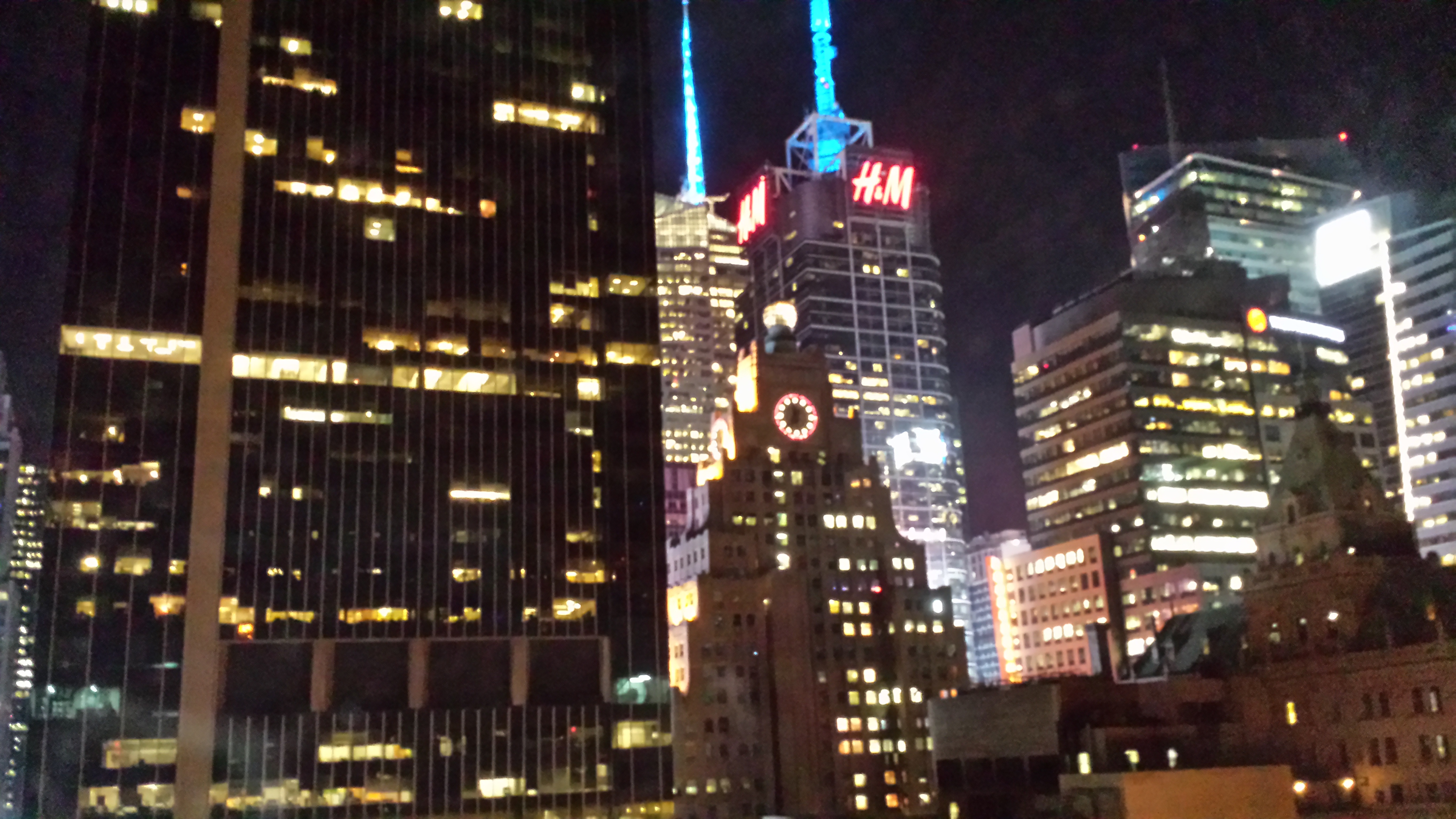 We got a hotel one block from Times Square.