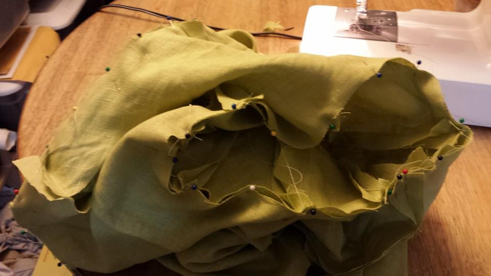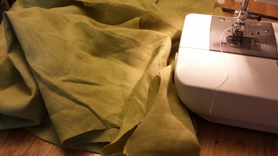 I had some linen that I had found at a second-hand store. It was actually drapes at some point, but hey, pure linen! And in a period-appropriate color.