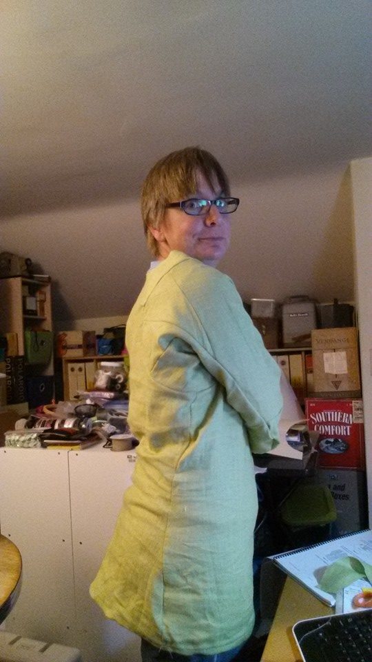 Not too shabby for only a few hours work. I’m pretty happy with this and it’ll be exactly what I wanted: A simple tunic to wear over hose or something, to look period (14th century) and still be really comfortable. I just need to stick a belt over it, and I’m good to go!