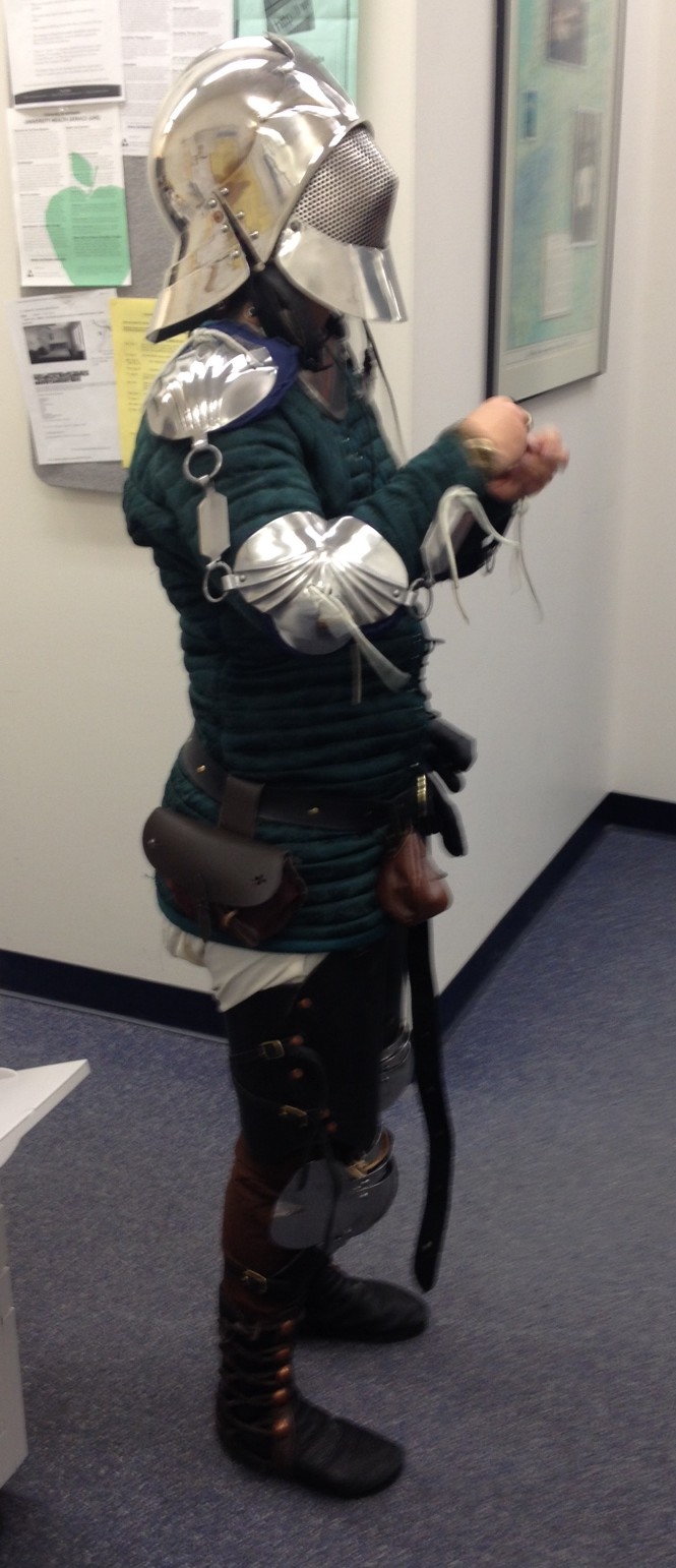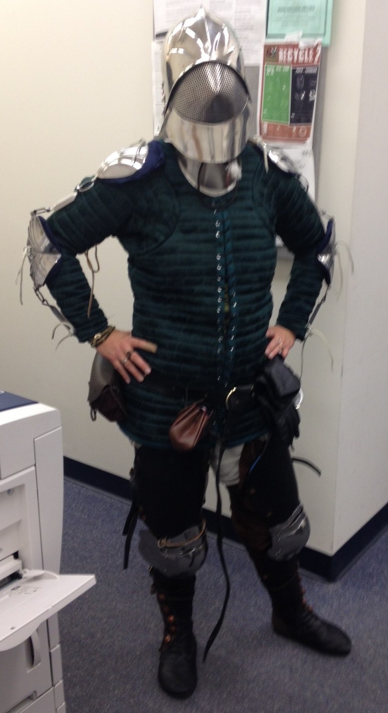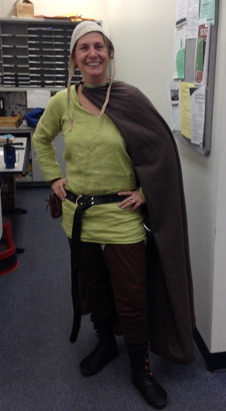In case you wondered, here’s some photos of me in my costume. It was a hodge-podge of 14th and 15th century pieces (many of which I’ve made) with odds-and-ends medieval-looking bits.