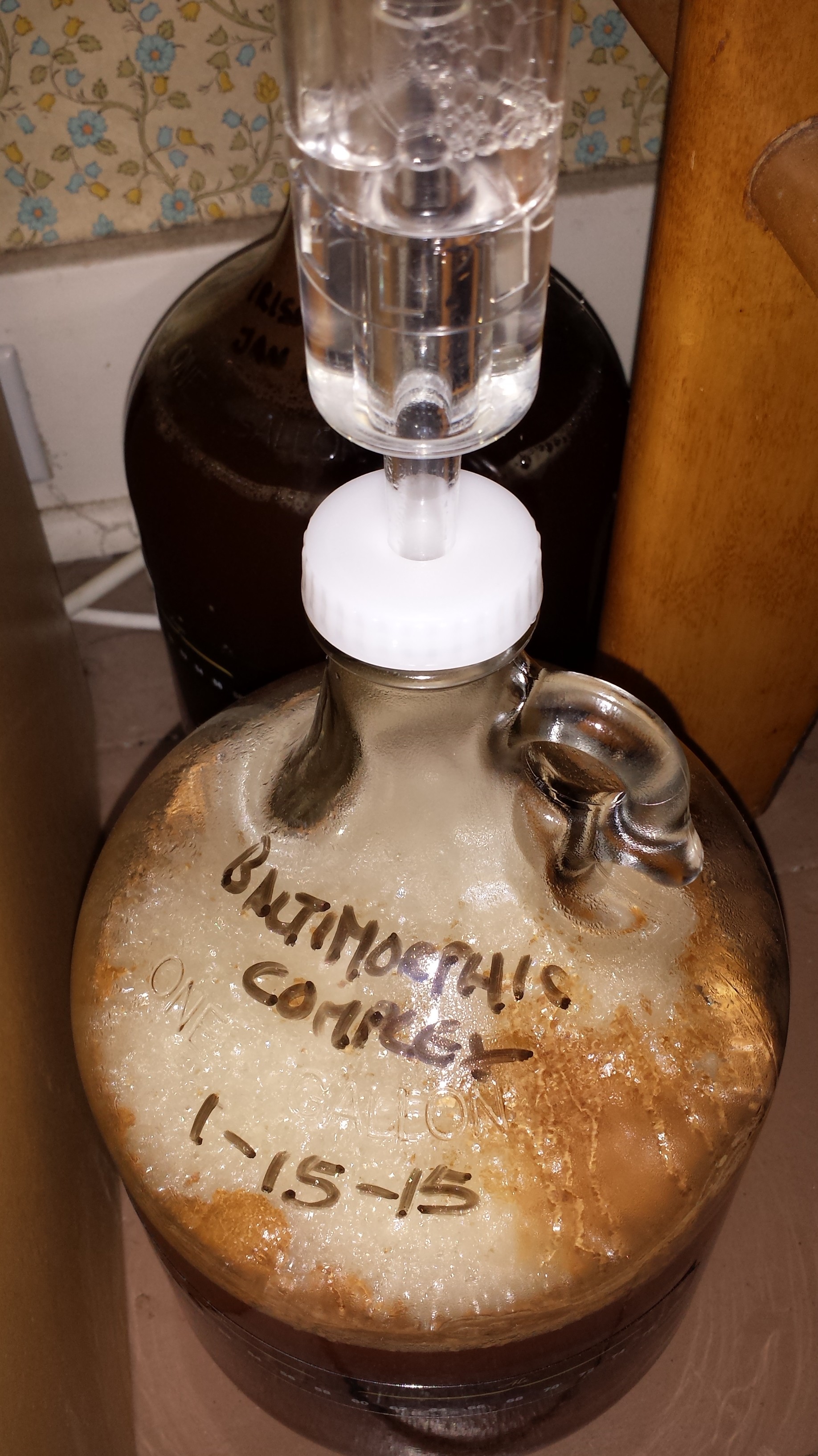 Next to the Irish red is my Baltimore Complex ale. I developed this experimental brew to have a Belgian-esque flair, and used Old Bay for flavoring. I have no idea what I’ll get. I just hope it’s drinkable.