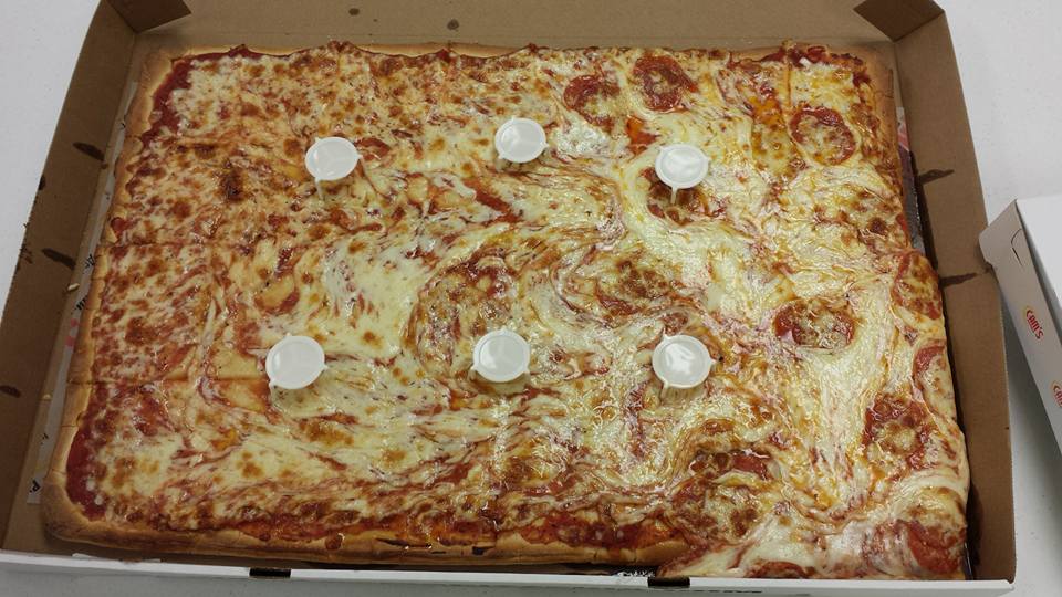 It’s also Art Every Day Month. During November, I try to spend 15 minutes or so drawing or painting something. I didn’t succeed last year, but maybe I will this year. Only that the only thing I have to show for day one is this pizza that looks remarkably like Starry Night by Vincent van Gogh.