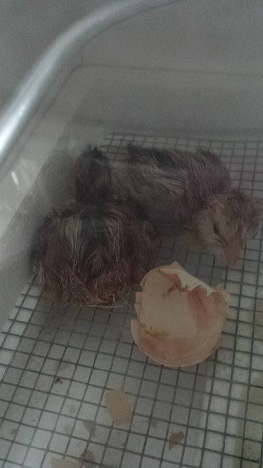 Three weeks ago, we took some of our eggs and put them in the incubator. Today, our farm family grew a bit.