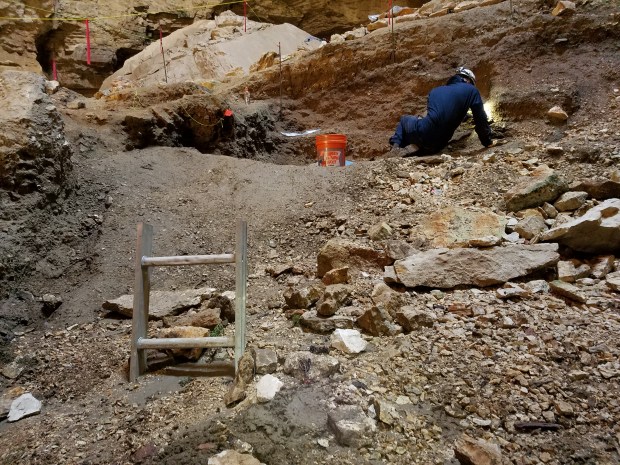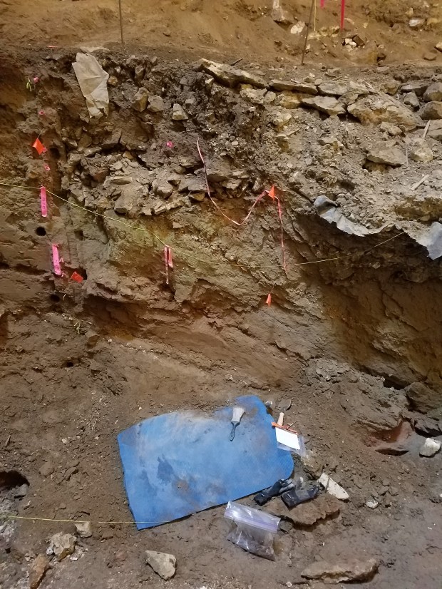 A full day – Day 2 at Natural Trap Cave – #NTCave2017 Today was a normal day off work in the cave. Normal by cave standards, anyway. First, was the usual rappel into the cave. One anchor, upon which all our lives depend. I made it, no problem, as always. Always grinning. I spent my day collecting a sample of a thin, charcoal-rich bed for carbon dating. It was tedious. My desk for the day. (Sideways again) But I did enjoy some relics from expeditions past. Ladder to nowhere. Tomorrow, I’m working on the surface. Lots of work to do there, too! Share this: Click to share on X (Opens in new window) X Click to share on Facebook (Opens in new window) Facebook Like Loading... Related Published by paleololigo Scientist (Paleontology, Geochemistry, Geology); Writer (Speculative and Science Fiction, plus technical and non-technical Science); Mom to great boy on the Autism spectrum; possessor of too many hobbies. View all posts by paleololigo