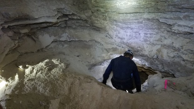The cavers (and me) were in for a special treat. We got permission to explore some of the passages off the main chamber with the task of removing survey markers from last summer’s cave mapping.