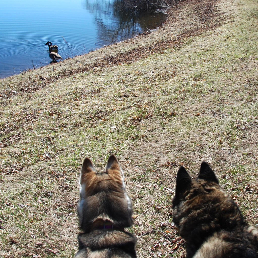 Though it was chilly, it was sunny. So we took the dogs for a walk at North Ponds Park in Webster, NY.