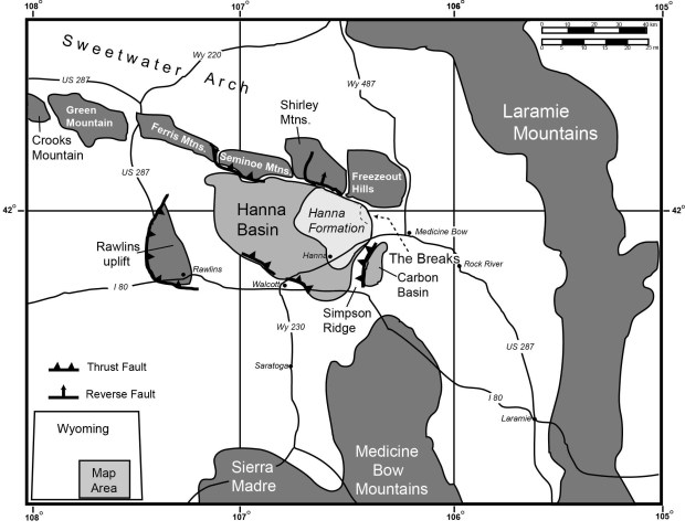 Location Map showing where the Hanna Formation lies