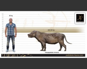 Harpagolestes was a bear-sized, hyena-like mesonychid carnivore. For a long time, scientists thought that mesonychid carnivores were the ancestors of modern whales due to similarities in the teeth. (New analyses put whales more closely related to hoofed mammals.)