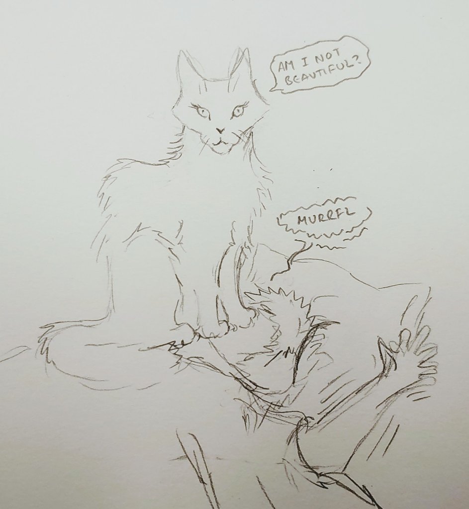This is my first Inktober. I’ll be drawing pictures, comics, and characatures of the cats of Mew-Mew House at Second Guess Farm.
